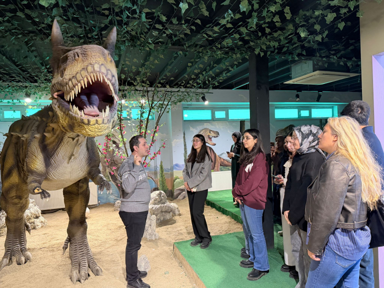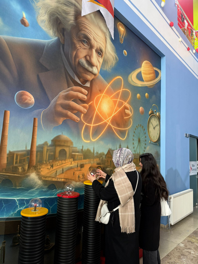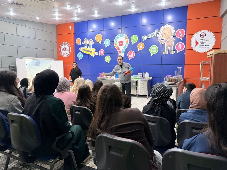 Okul Dışı Öğrenme Ortamları kapsamında ve Doç. Dr. Fatma Erdoğan hocamızın rehberliğinde Elazığ Bilim Merkezi ziyaret edildi. Gerçekleştirilen bu eğitsel gezide öğretmen adaylarımız, matematiksel kavramları sanatla ilişkilendirerek tuval üzerine aktarma fırsatı buldu. Matematiğin soyut yapısının somut ve estetik bir biçimde ifade edildiği etkinlikte, bilim ve sanat disiplinler arası bir bakış açısıyla ele alındı. Ziyaret programı kapsamında ayrıca 3D sinema gösterimi, Deney Atölyesi ve Dinozorlar Atölyesi gezildi. Öğretmen adaylarımız, bilimi yaparak ve yaşayarak öğrenmenin keyfini yaşadı. Öğretmen adaylarının okul dışı öğrenme ortamlarında aktif katılım sağlayarak kalıcı öğrenmeler edinmelerini amaçlayan bu verimli ziyaret, bilimin eğlenceli ve uygulamalı yönünü deneyimleme açısından önemli kazanımlar sundu. Bu anlamlı öğrenme sürecine katkı sunan Elazığ Bilim Merkezi yetkililerine ayrıca teşekkürlerimiz sunarız.
